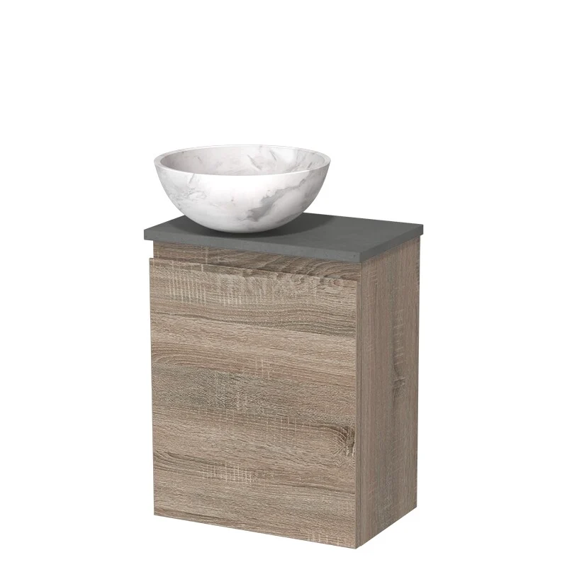 Toilet unit with wash basin | 41 cm Oak Handleless front White marble Natural stone countertop wash basin Dark grey concrete worktop