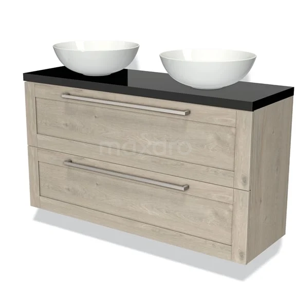 Modulo Plato Slim Vanity units for countertop basin | 120 cm Light grey oak Bordered front High-gloss black worktop 2 Stacked drawers