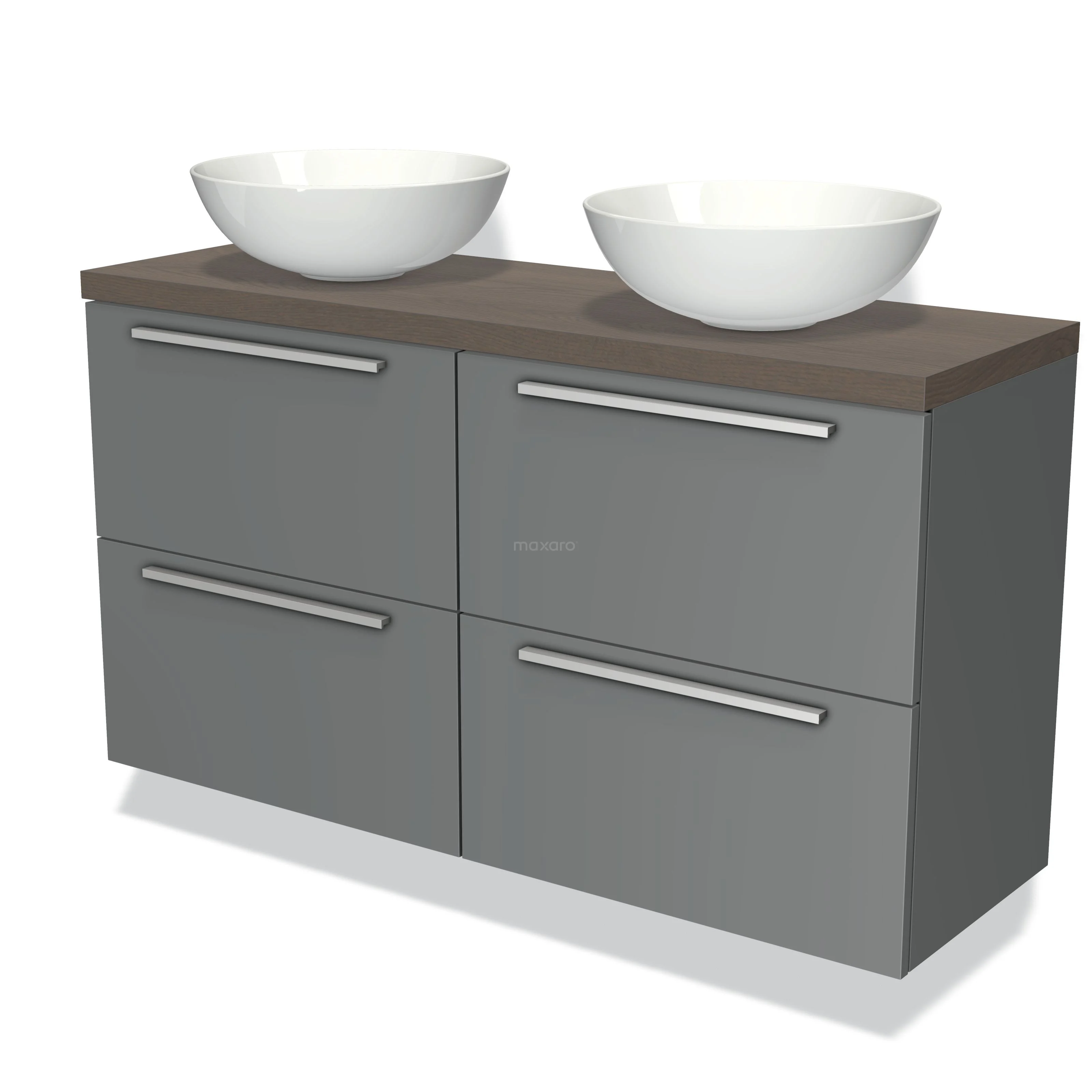 Modulo Plato Slim Vanity units for countertop basin | 120 cm Mid grey Flat front Dark brown oak worktop 4 drawers