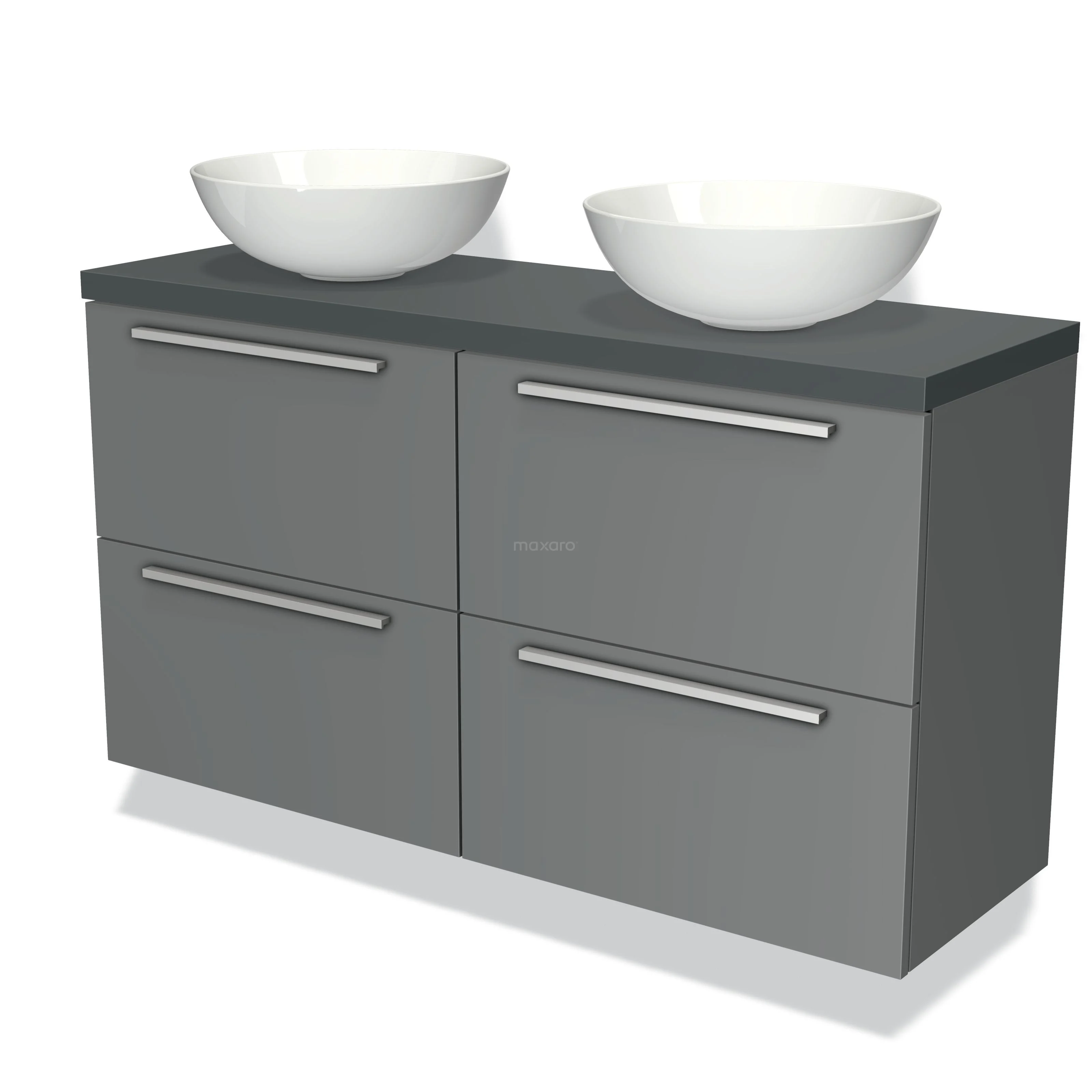 Modulo Plato Slim Vanity units for countertop basin | 120 cm Mid grey Flat front Dark grey worktop 4 drawers