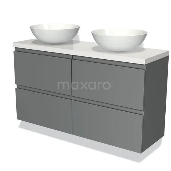 Modulo Plato Slim Vanity units for countertop basin | 120 cm Mid grey Handle-less front High-gloss white worktop 4 drawers