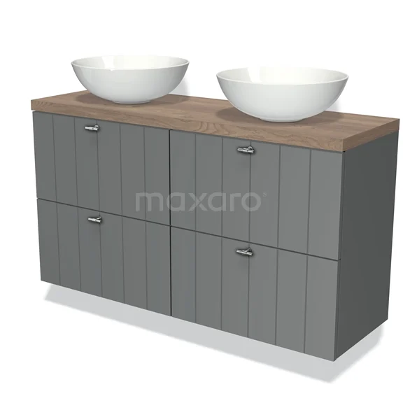 Modulo Plato Slim Vanity units for countertop basin | 120 cm Mid grey Slat front Mid brown oak worktop 4 drawers