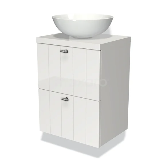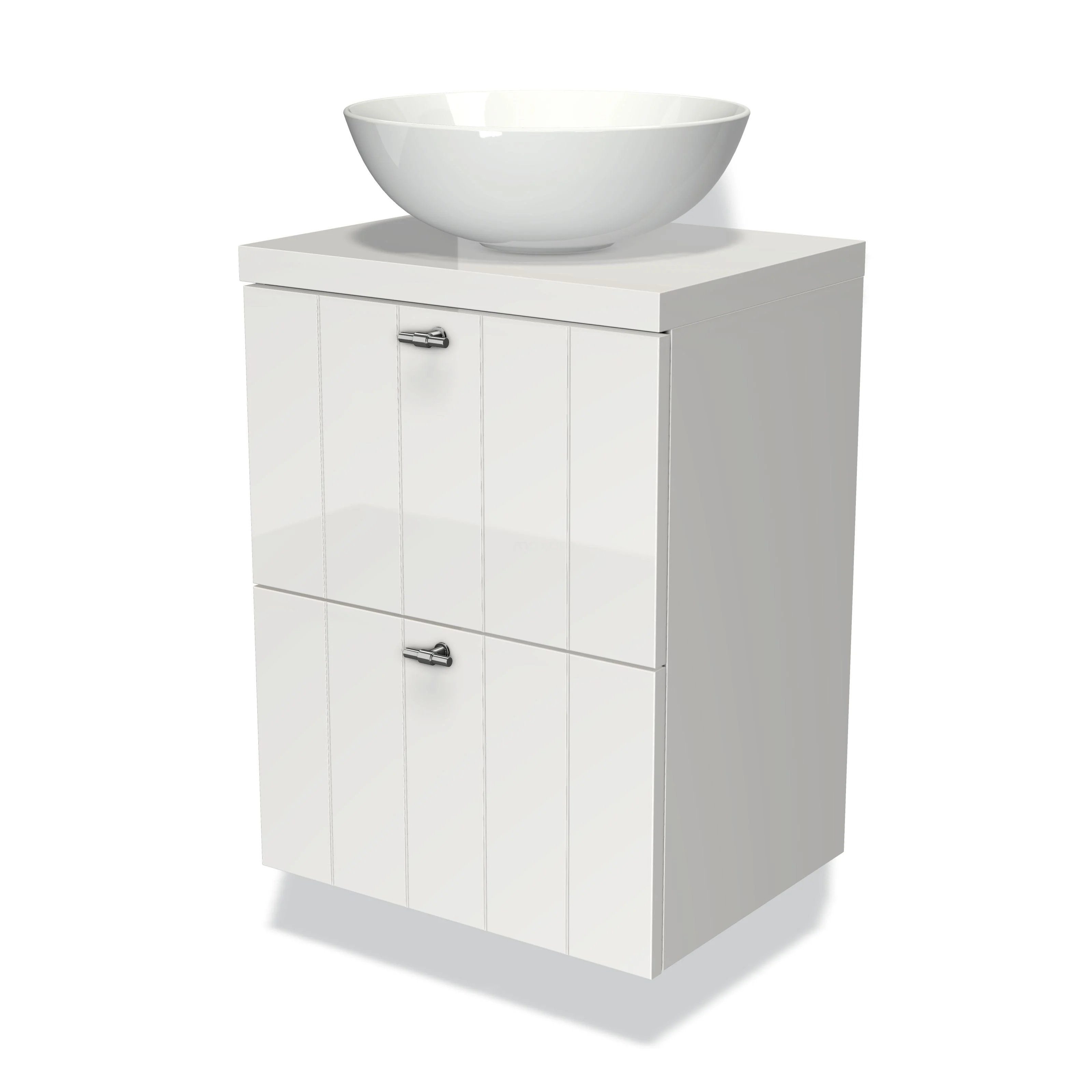 Modulo Plato Slim Vanity units for countertop basin | 50 cm High-gloss white Slat front High-gloss white worktop 2 Stacked drawers