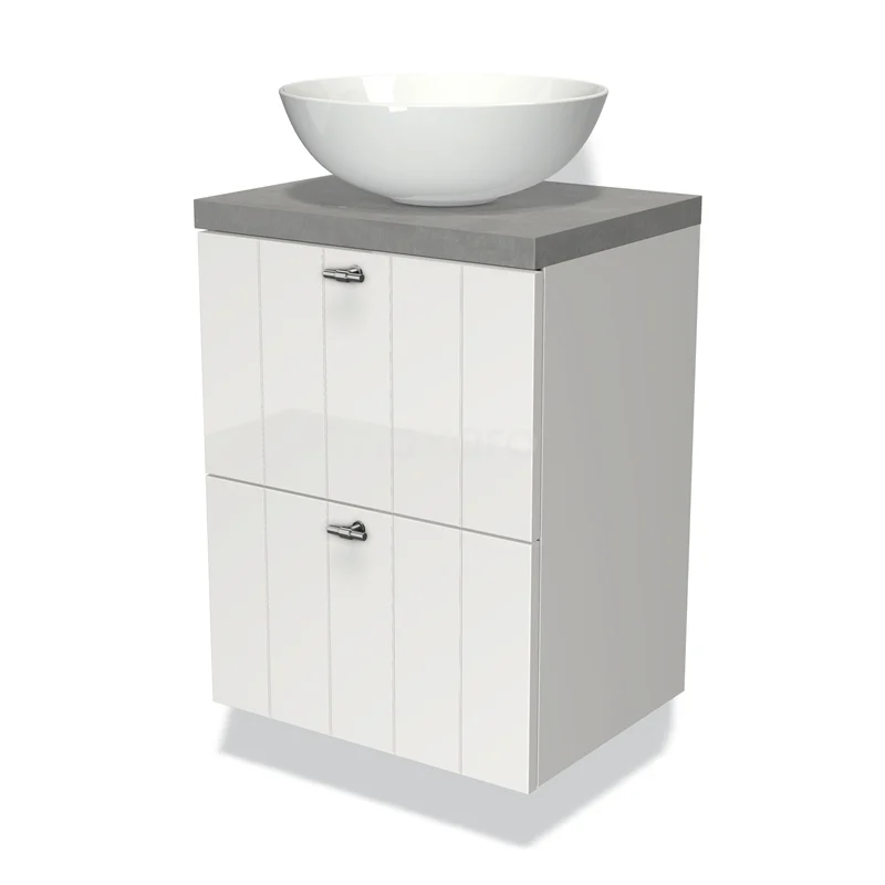 Modulo Plato Slim Vanity units for countertop basin | 50 cm High-gloss white Slat front Light grey concrete worktop 2 Stacked drawers