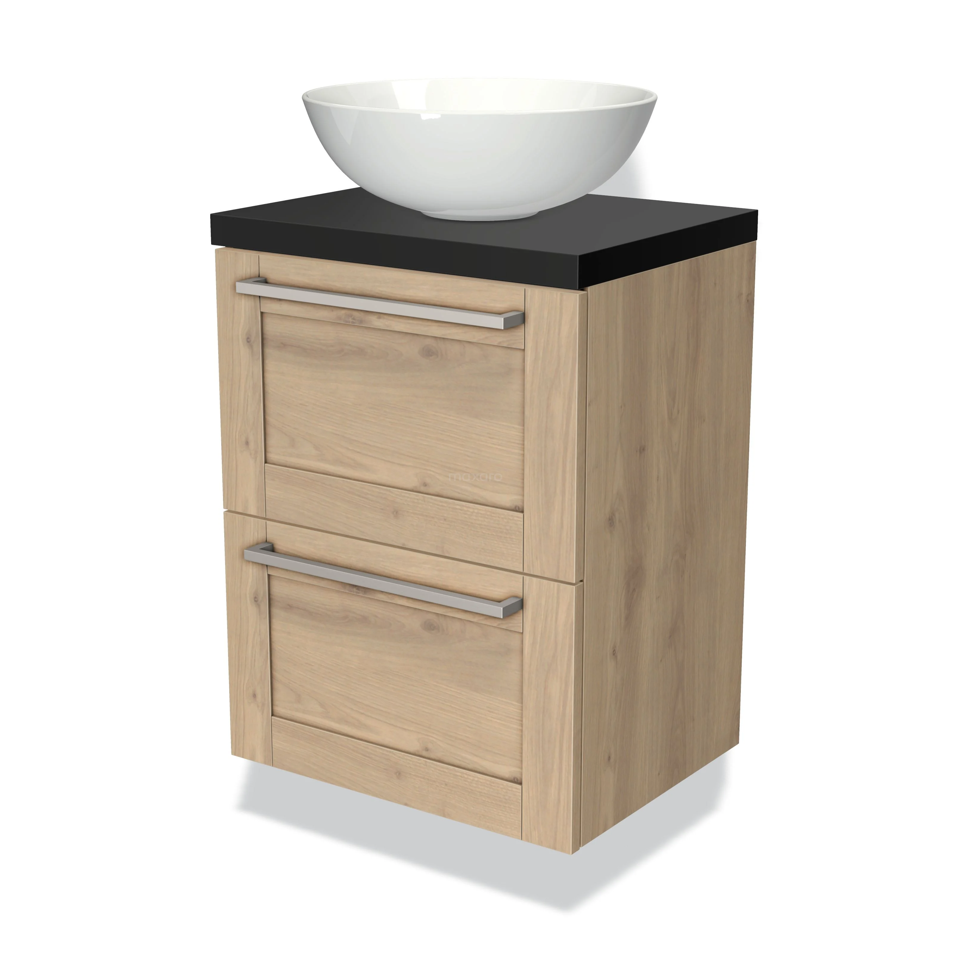 Modulo Plato Slim Vanity units for countertop basin | 50 cm Light brown oak Bordered front Matte black worktop 2 Stacked drawers
