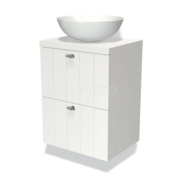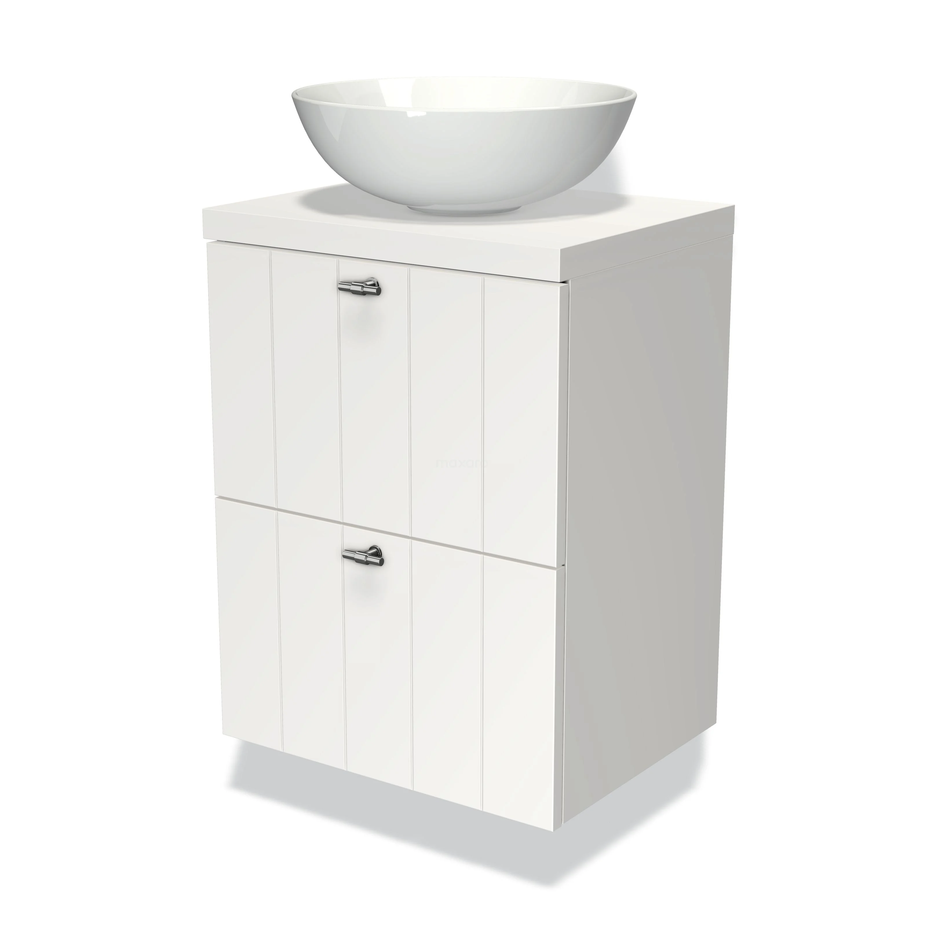 Modulo Plato Slim Vanity units for countertop basin | 50 cm Matte white Slat front Matte white worktop 2 Stacked drawers