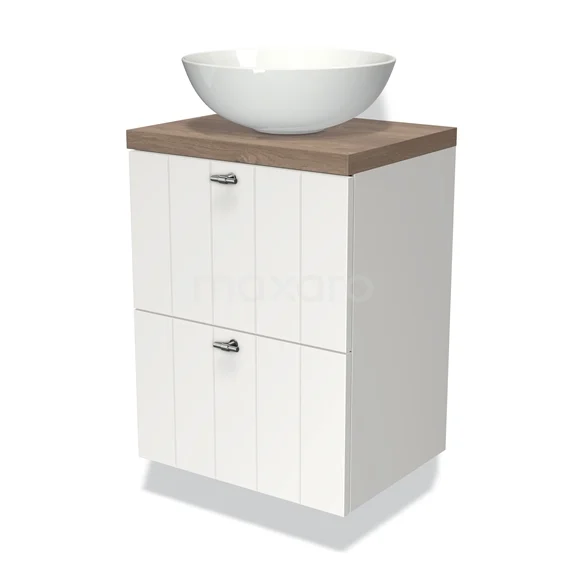 Stylish design Thanks to its beautiful design, this bathroom unit will be the eye-catcher of your bathroom. The matte white base cabinet has a modern look and features a basin worktop in mid brown oak. In addition, the unit features a slatted front for a rustic touch. You will need to joint the handles yourself. These are available in different colours and shapes.