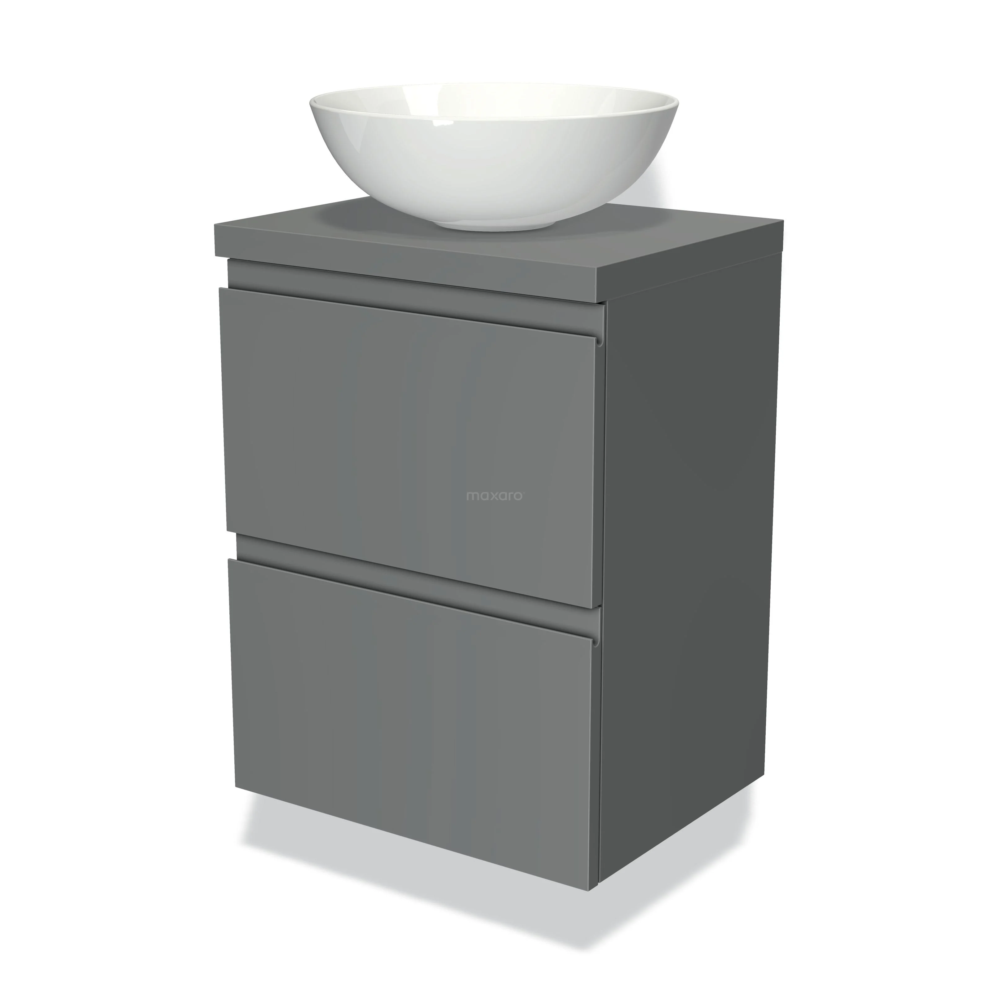 Modulo Plato Slim Vanity units for countertop basin | 50 cm Mid grey Handle-less front Mid grey worktop 2 Stacked drawers