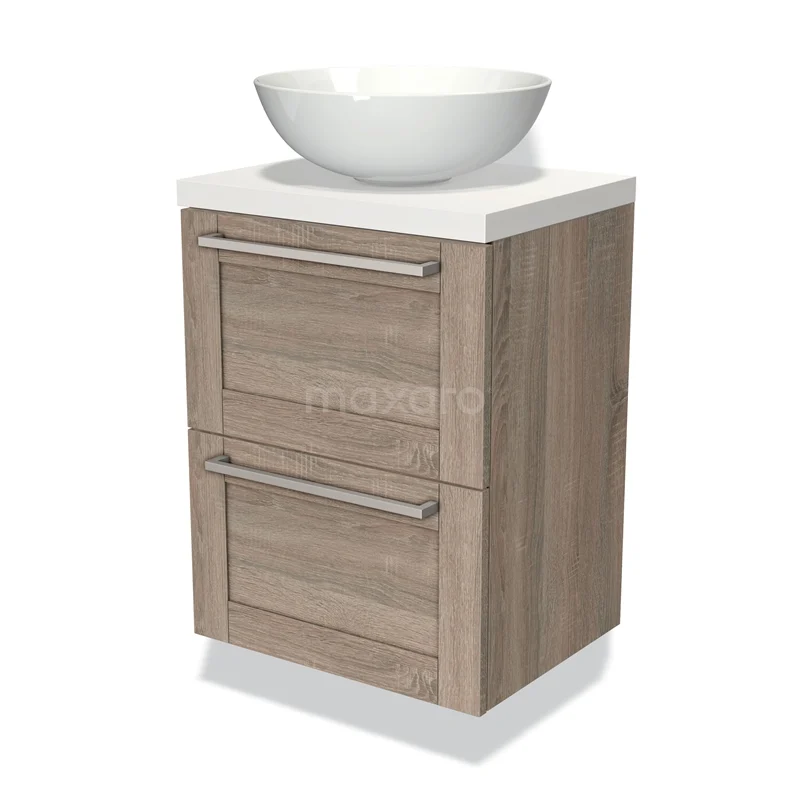 Modulo Plato Slim Vanity units for countertop basin | 50 cm Oak Bordered front Matte white worktop 2 Stacked drawers