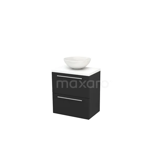 Modulo+ Plato Slim Vanity units for countertop basin | 60 cm High-gloss white Flat front High-gloss white worktop 2 Stacked drawers