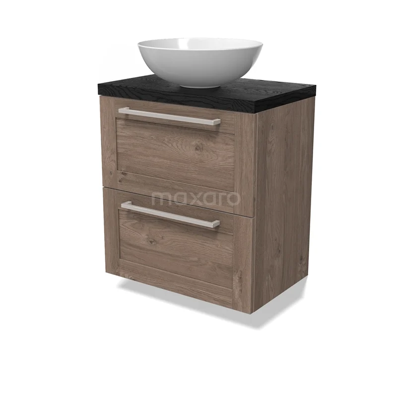 Modulo Plato Slim Vanity units for countertop basin | 60 cm Mid brown oak Bordered front Black oak worktop 2 Stacked drawers