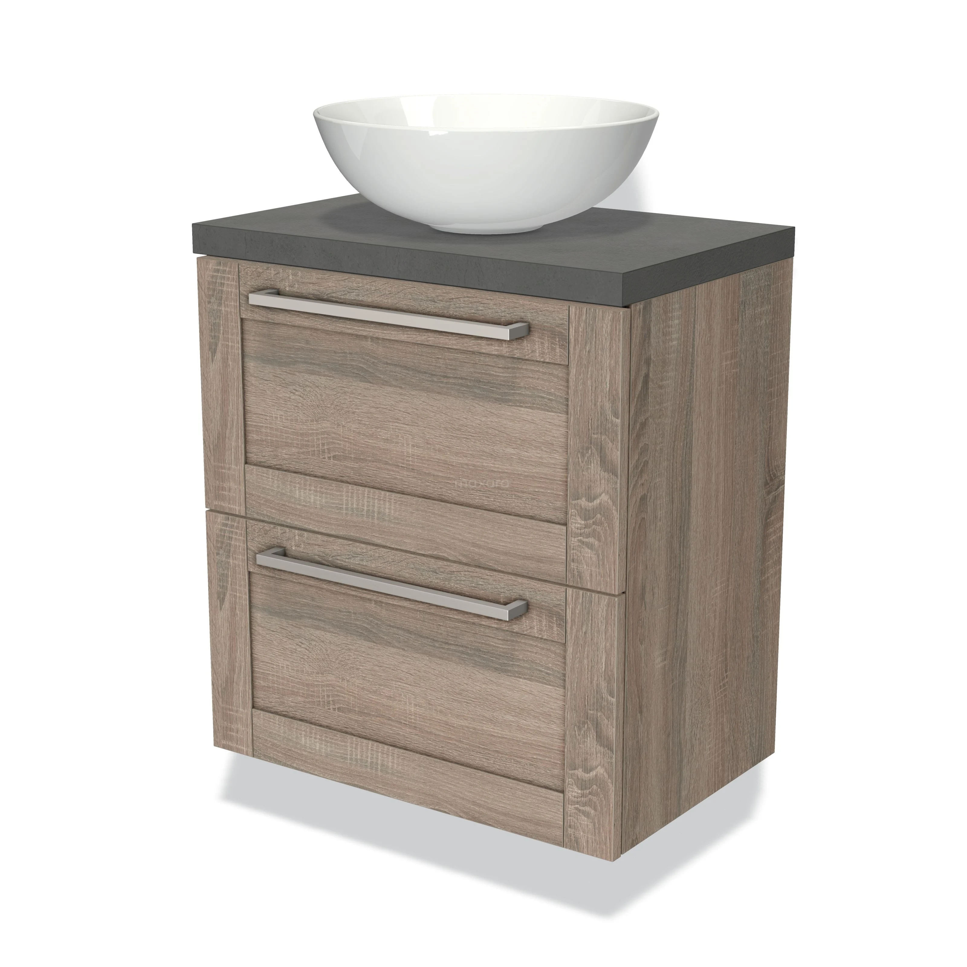 Modulo Plato Slim Vanity units for countertop basin | 60 cm Oak Bordered front Dark grey concrete worktop 2 Stacked drawers