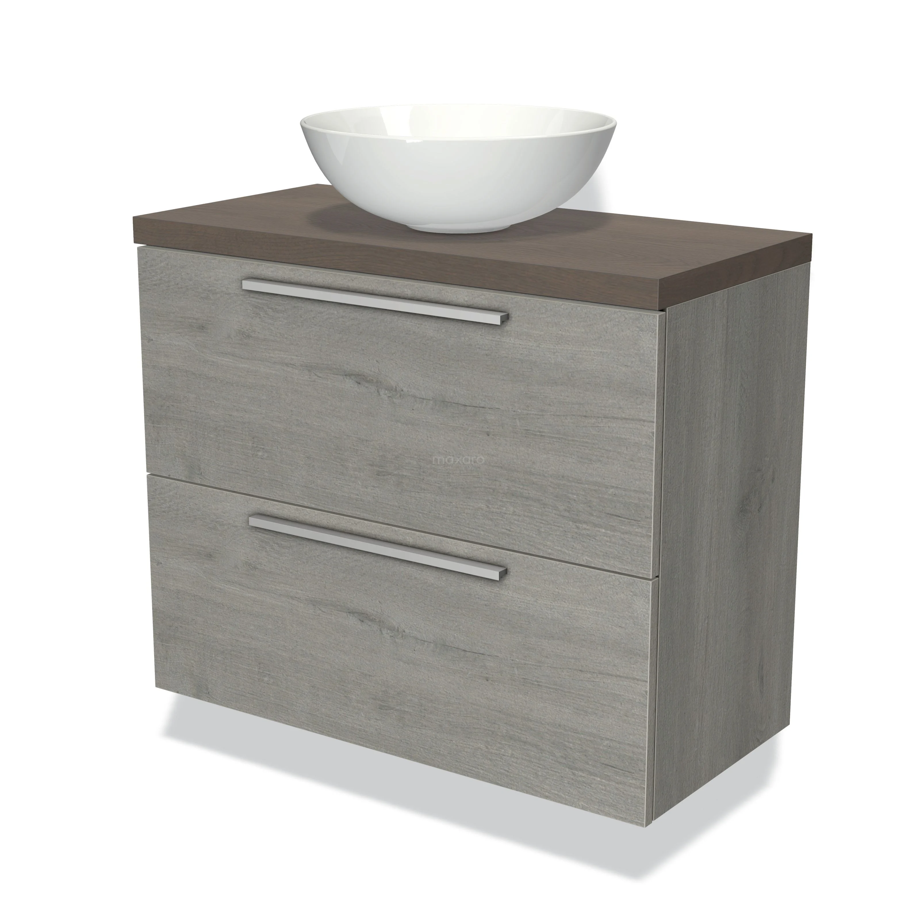 Modulo Plato Slim Vanity units for countertop basin | 80 cm Grey oak Flat front Dark brown oak worktop 2 Stacked drawers