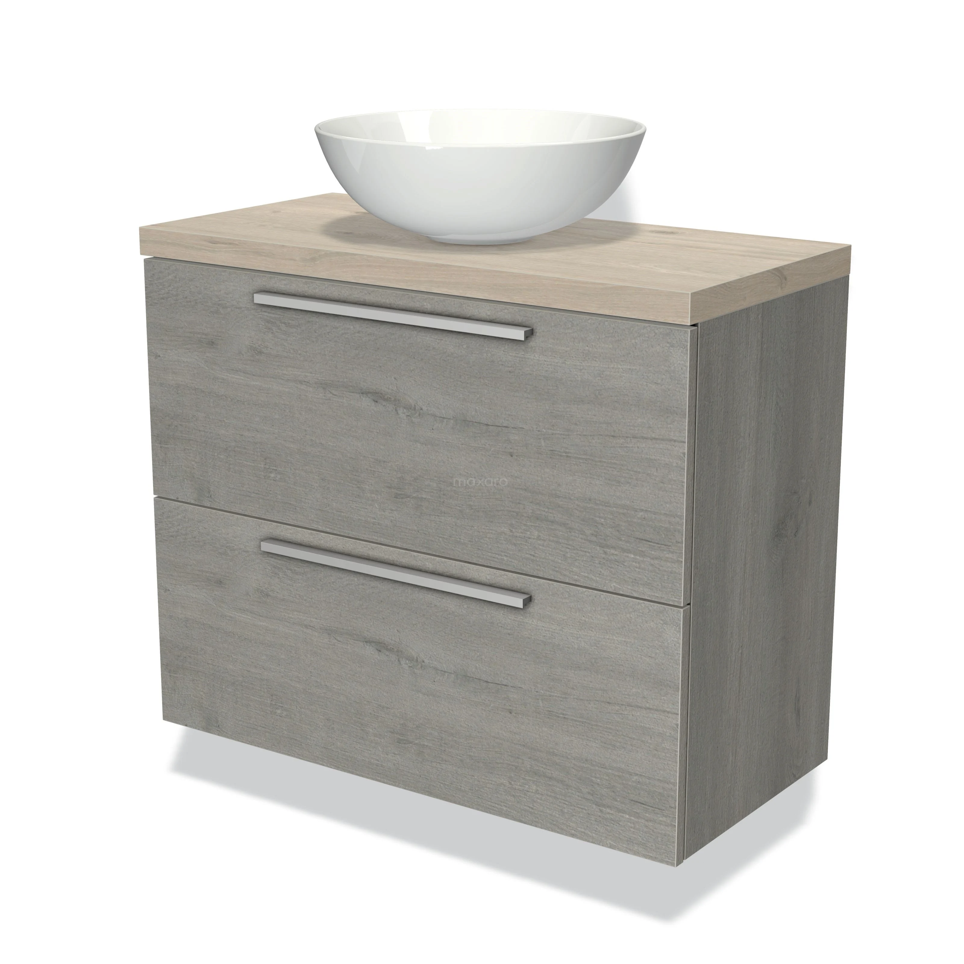 Modulo Plato Slim Vanity units for countertop basin | 80 cm Grey oak Flat front Light grey oak worktop 2 Stacked drawers