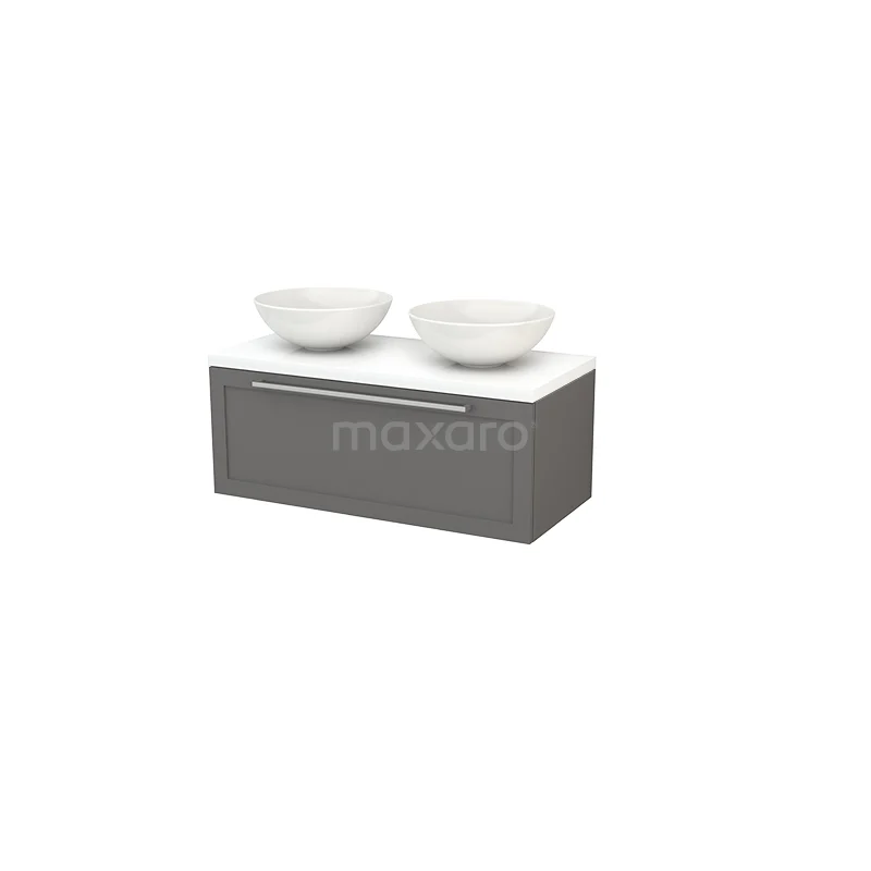 Modulo+ Plato Vanity units for countertop basin | 100 cm Basalt Frame front High-gloss white worktop 1 drawer