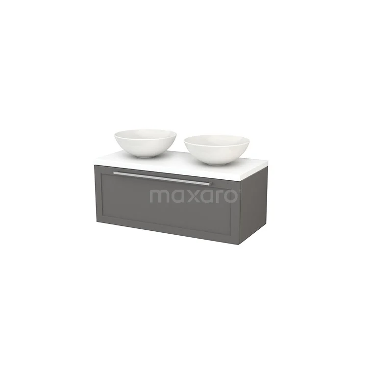 Modulo+ Plato Vanity units for countertop basin | 100 cm Basalt Frame front Matte white worktop 1 drawer