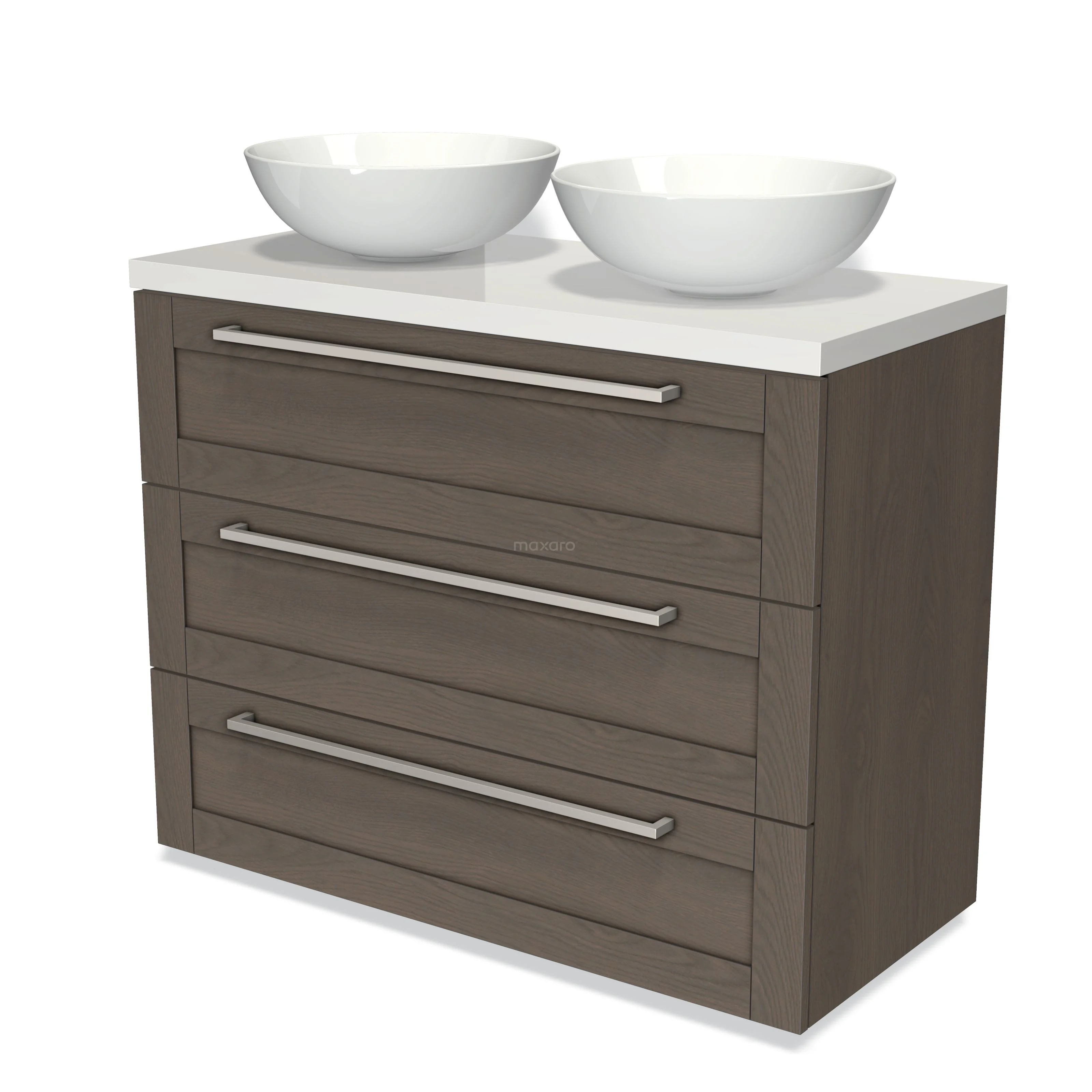 Modulo Plato Vanity units for countertop basin | 100 cm Dark brown oak Frame front High-gloss white worktop 3 drawers