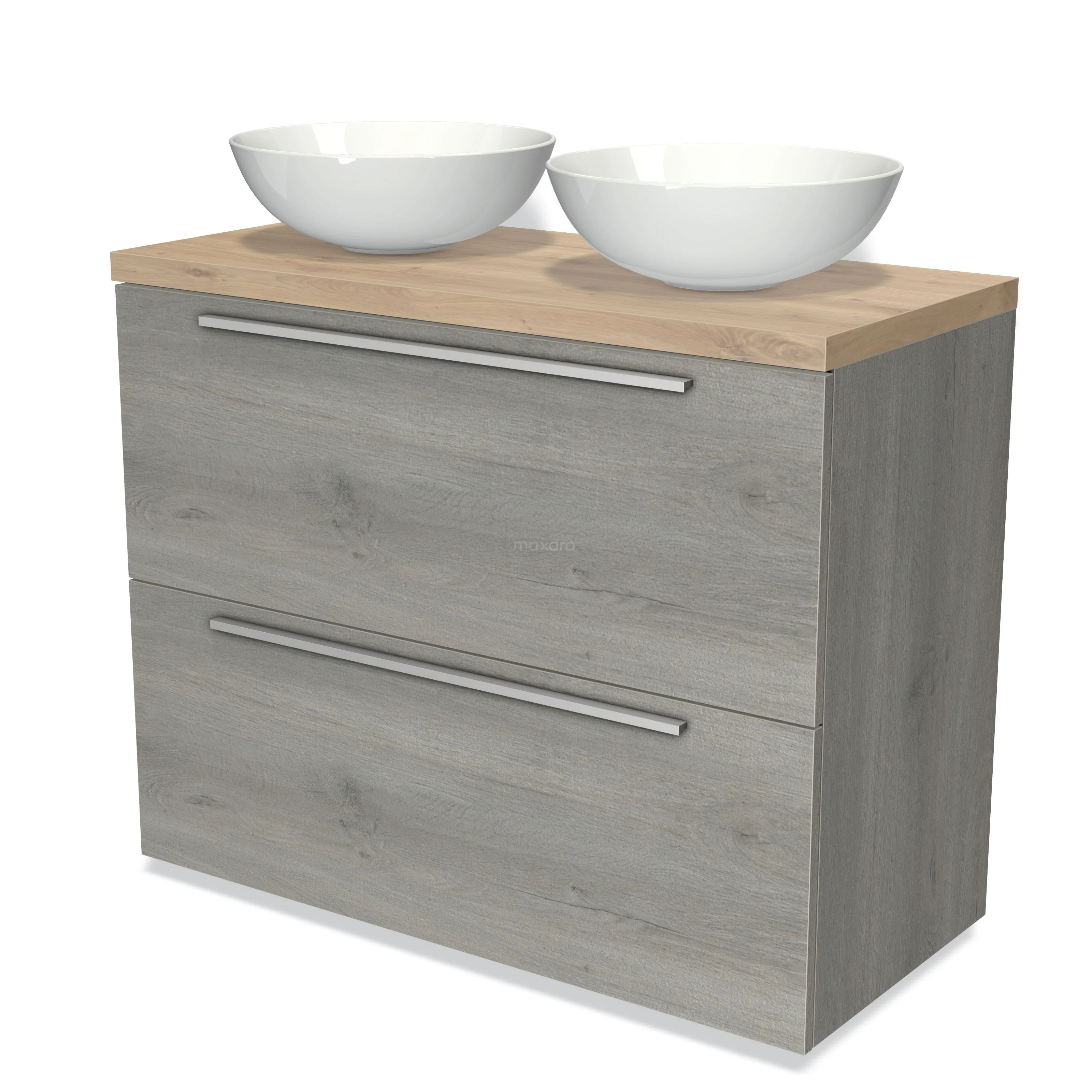 Modulo Plato Vanity units for countertop basin | 100 cm Grey oak Flat front Light brown oak worktop 2 stacked drawers under each other