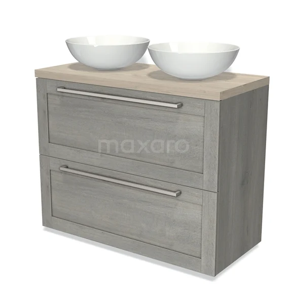 Modulo Plato Vanity units for countertop basin | 100 cm Grey oak Frame front Light grey oak worktop 2 stacked drawers under each other