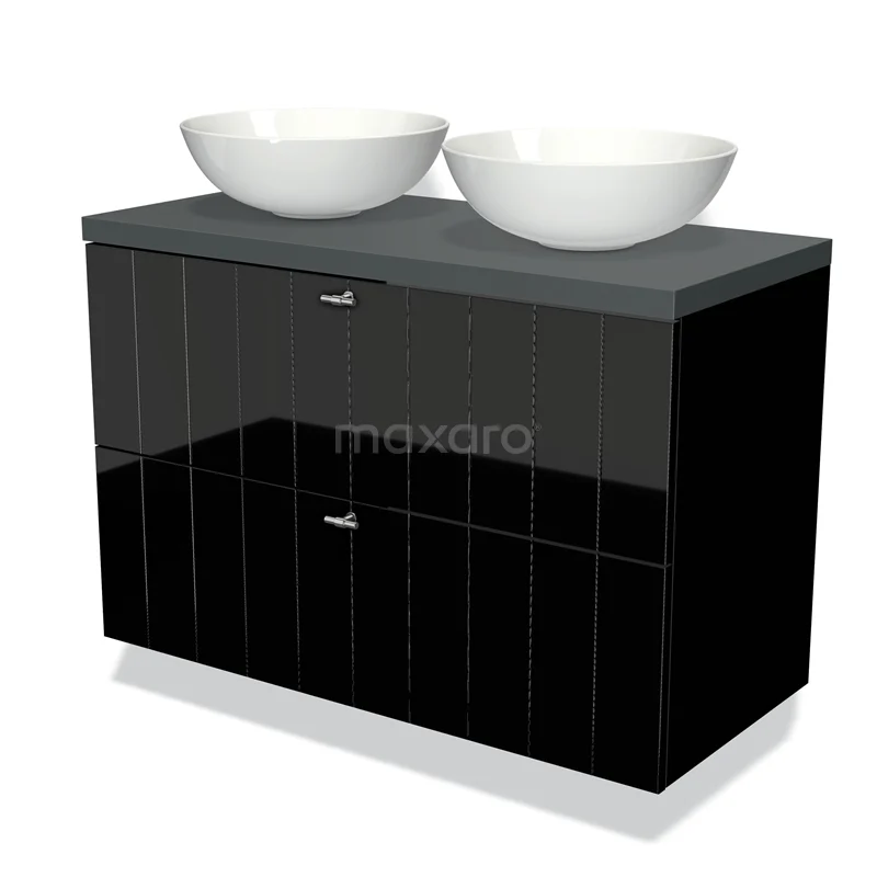 Modulo Plato Vanity units for countertop basin | 100 cm High-gloss black Slat front Dark grey worktop 2 Stacked drawers