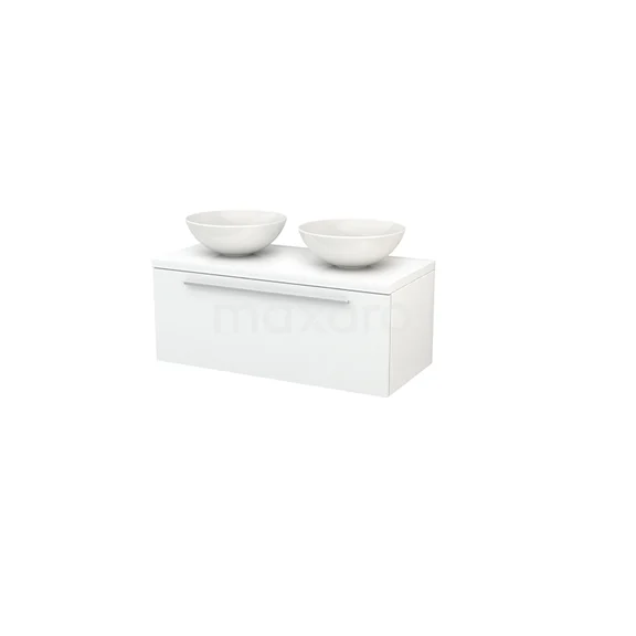 Modulo+ Plato Vanity units for countertop basin | 100 cm High-gloss white Flat front High-gloss white worktop 1 drawer