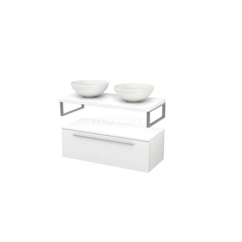 Modulo+ Plato Vanity units for countertop basin | 100 cm High-gloss white Flat front High-gloss white worktop Low floating
