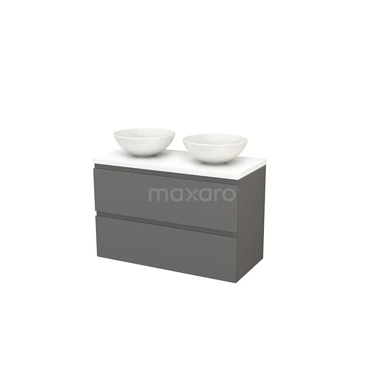 Modulo+ Plato Vanity units for countertop basin | 100 cm High-gloss white Handle-less front High-gloss white worktop 2 Stacked drawers
