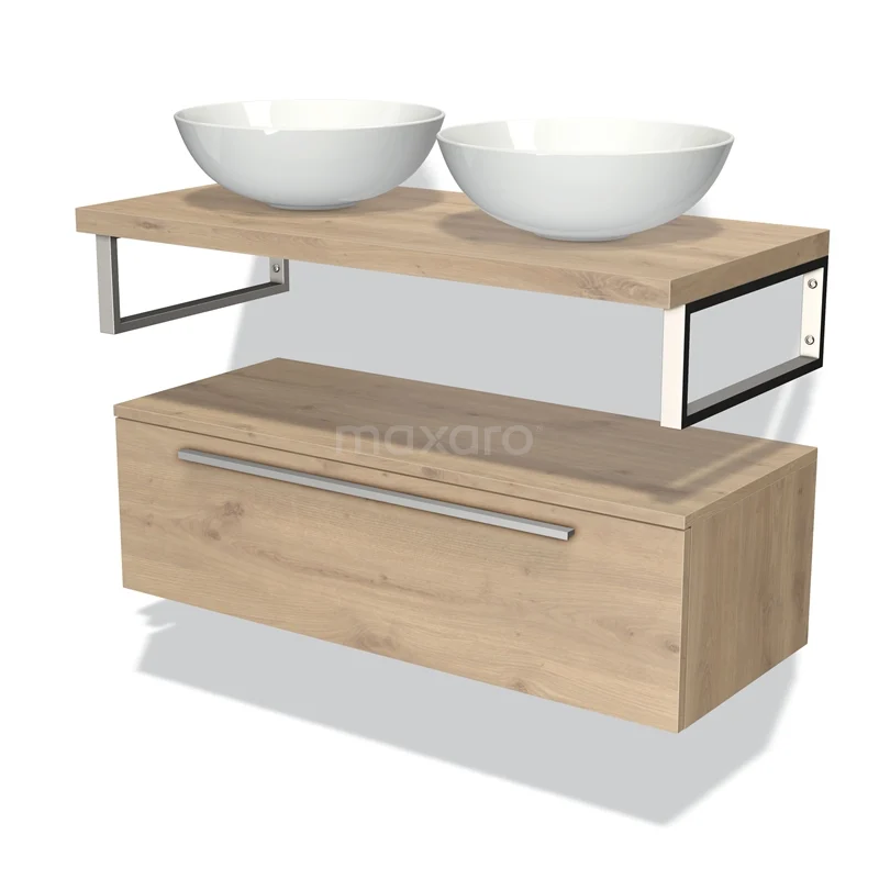 Modulo Plato Vanity units for countertop basin | 100 cm Light brown oak Flat front Light brown oak worktop Low floating