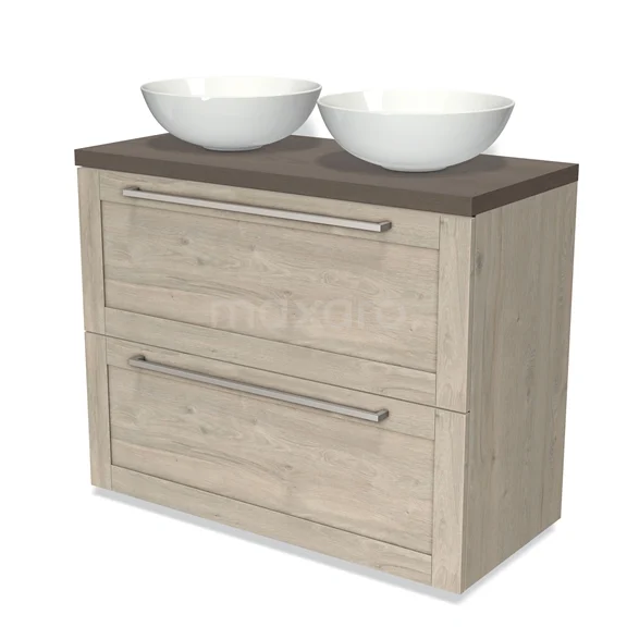 Modulo Plato Vanity units for countertop basin | 100 cm Light grey oak Frame front Dark brown oak worktop 2 stacked drawers under each other