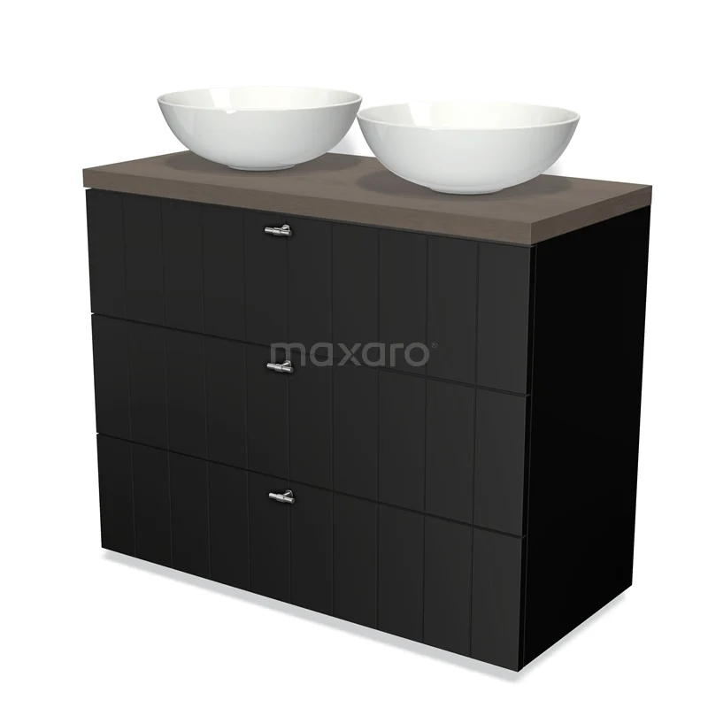 Modulo Plato Vanity units for countertop basin | 100 cm Matte black Slat front Dark brown oak worktop 3 drawers