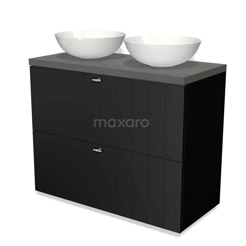 Modulo Plato Vanity units for countertop basin | 100 cm Matte black Slat front Dark grey concrete worktop 2 stacked drawers under each other