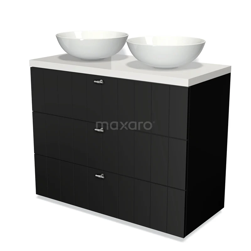 Modulo Plato Vanity units for countertop basin | 100 cm Matte black Slat front High-gloss white worktop 3 drawers