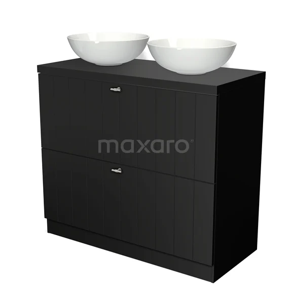Modulo Plato Vanity units for countertop basin | 100 cm Matte black Slat front Matte black worktop 2 high drawers standing drawers under each other