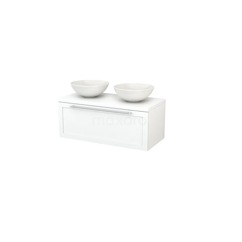 Modulo+ Plato Vanity units for countertop basin | 100 cm Matte white Frame front Matte white worktop 1 drawer