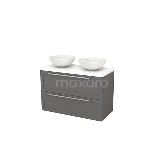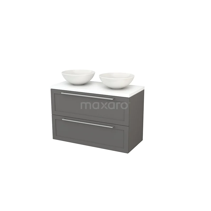 Modulo+ Plato Vanity units for countertop basin | 100 cm Matte white Frame front Matte white worktop 2 Stacked drawers