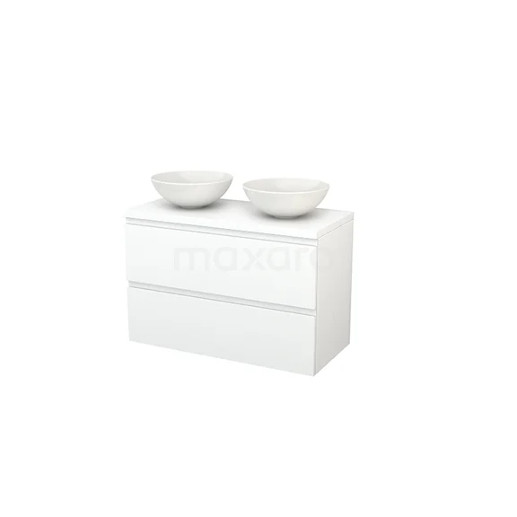 Modulo+ Plato Vanity units for countertop basin | 100 cm Matte white Handle-less front Matte white worktop 2 Stacked drawers