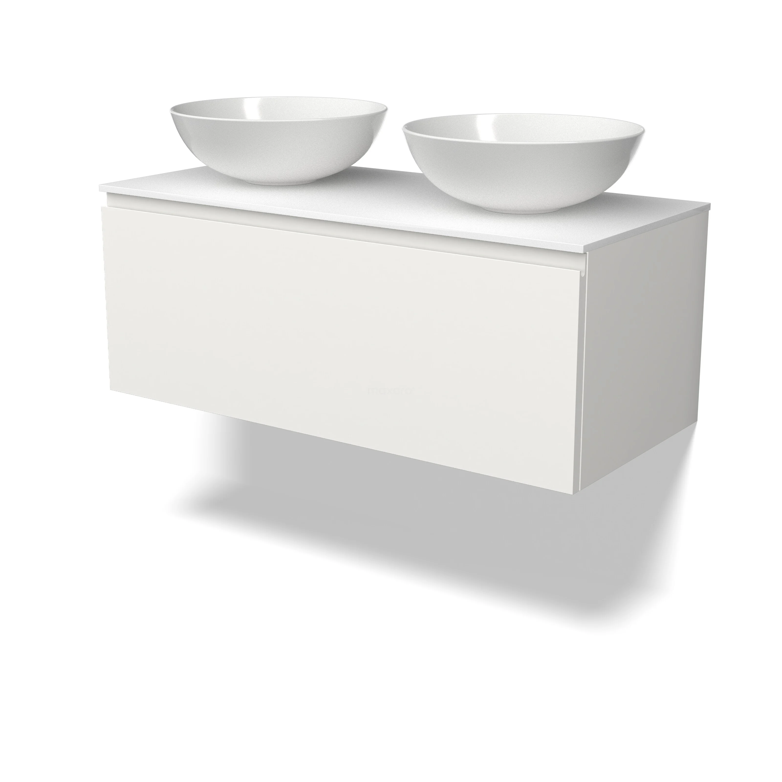 Modulo Plato Vanity units for countertop basin | 100 cm Matte white Handle-less front Solid surface worktop 1 drawer