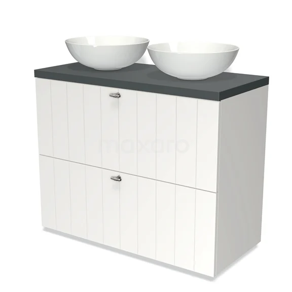 Modulo Plato Vanity units for countertop basin | 100 cm Matte white Slat front Dark grey worktop 2 stacked drawers under each other