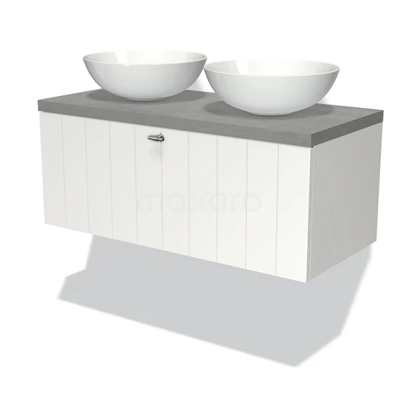 Modulo Plato Vanity units for countertop basin | 100 cm Matte white Slat front Light grey concrete worktop 1 drawer