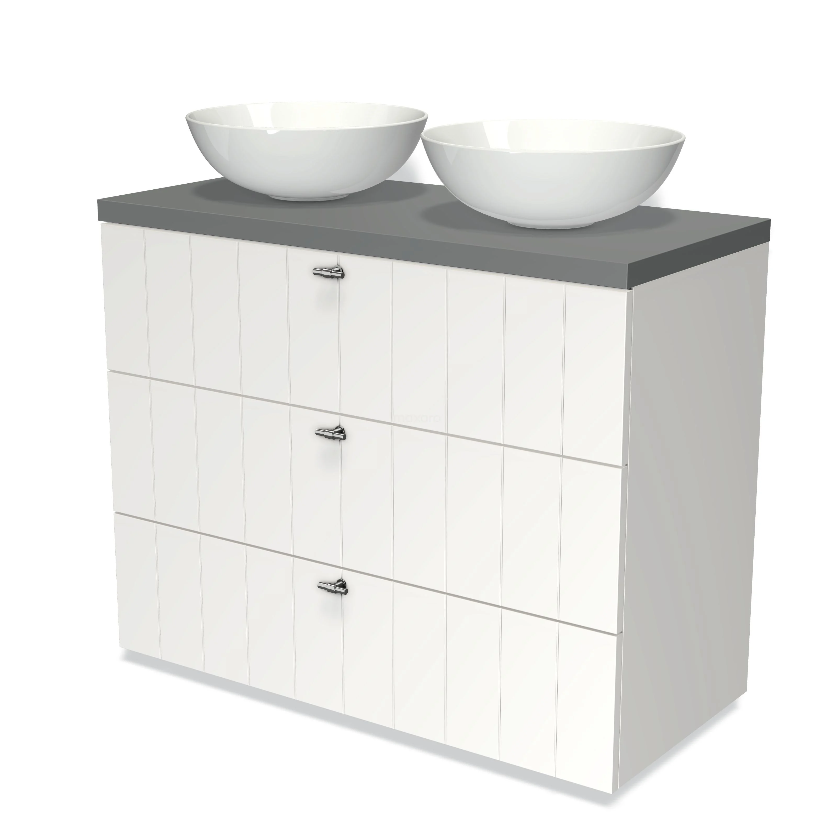 Modulo Plato Vanity units for countertop basin | 100 cm Matte white Slat front Mid grey worktop 3 drawers