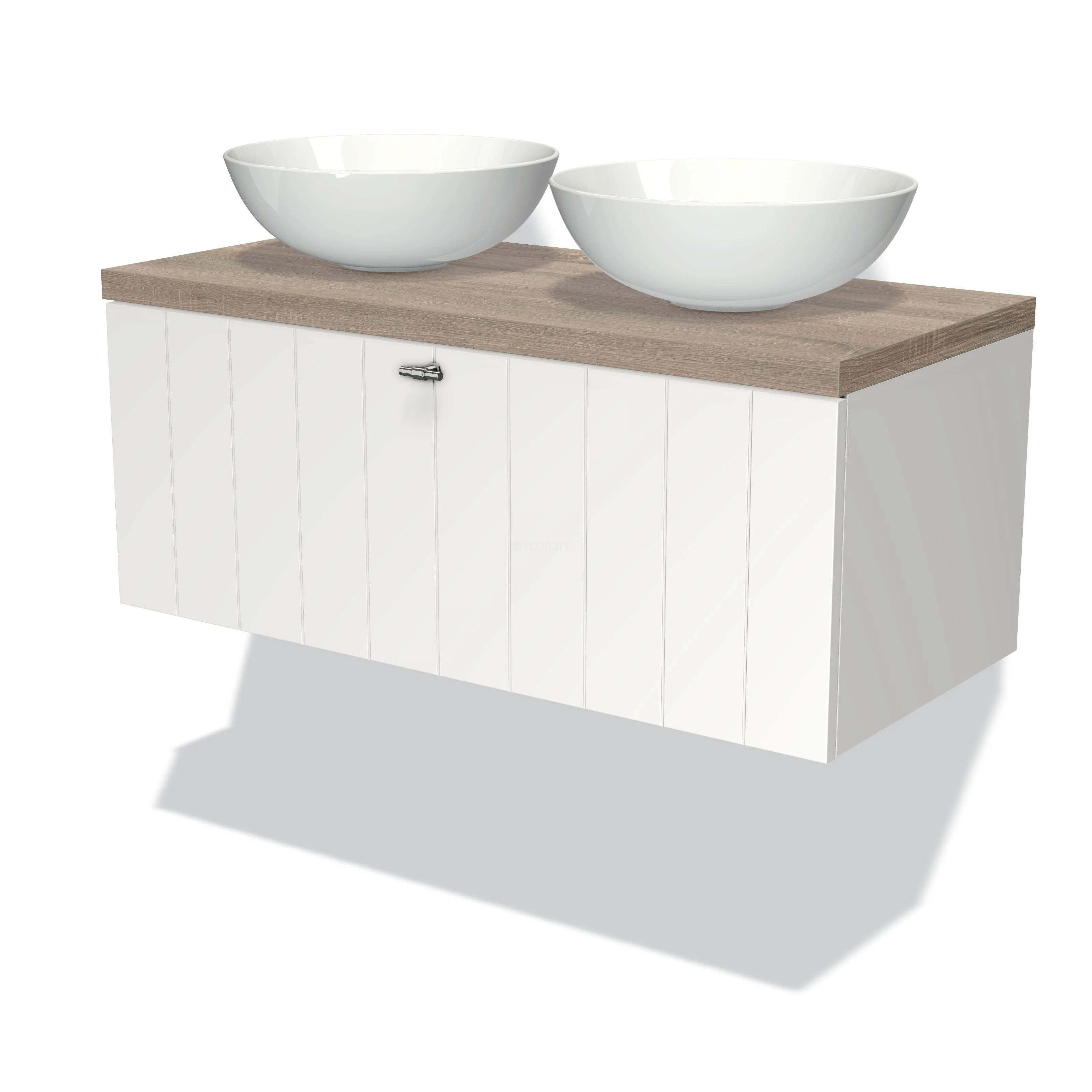 Modulo Plato Vanity units for countertop basin | 100 cm Matte white Slat front Oak worktop 1 drawer