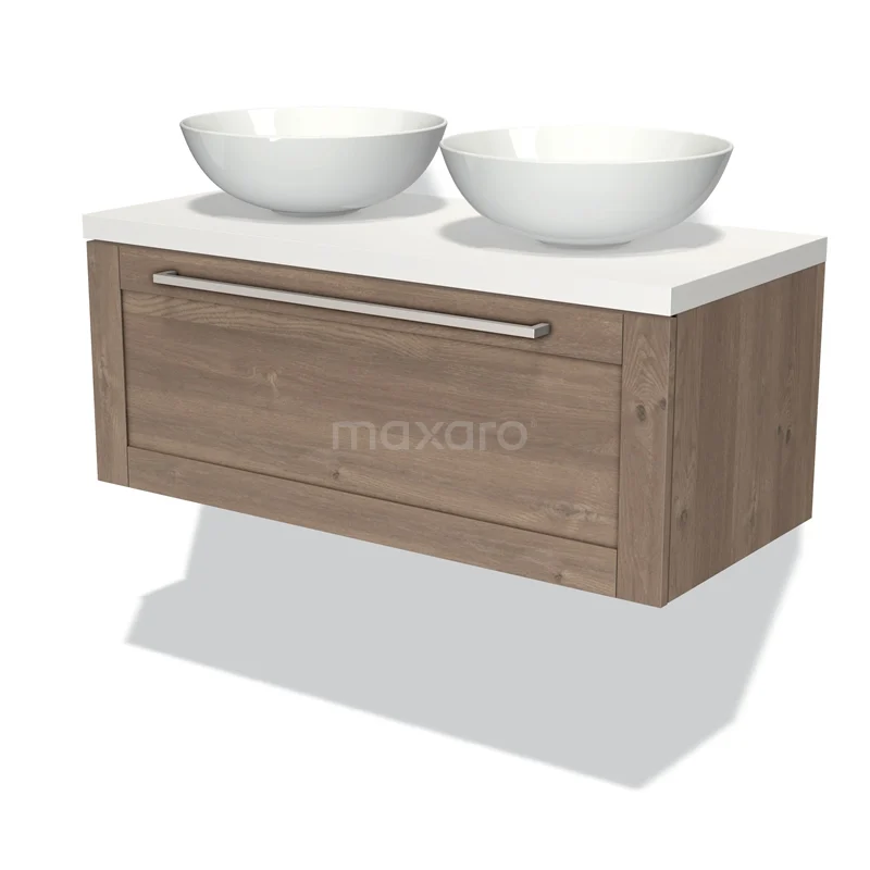 Modulo Plato Vanity units for countertop basin | 100 cm Mid brown oak Frame front Matte white worktop 1 drawer