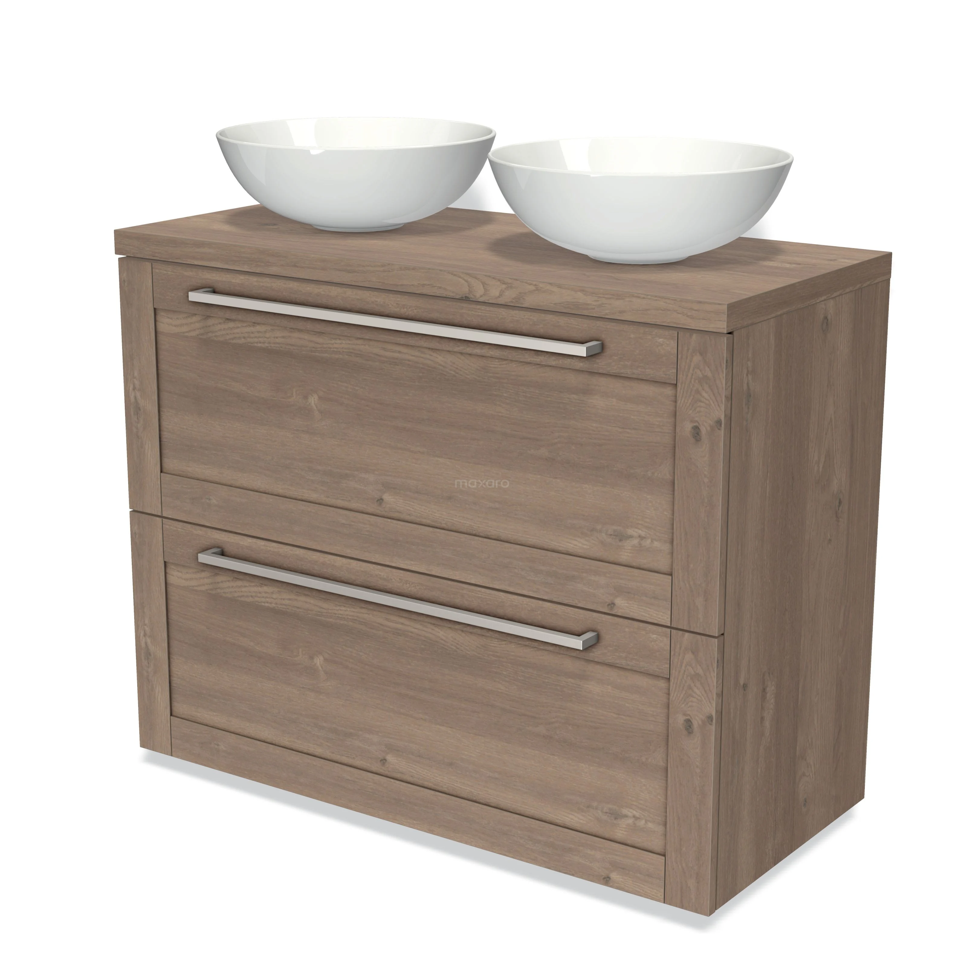 Modulo Plato Vanity units for countertop basin | 100 cm Mid brown oak Frame front Mid brown oak worktop 2 stacked drawers under each other