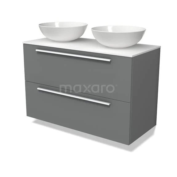 Modulo Plato Vanity units for countertop basin | 100 cm Mid grey Flat front Solid surface worktop 2 Stacked drawers