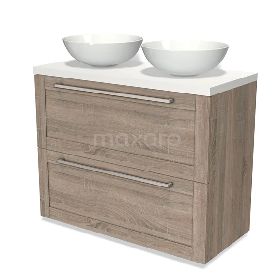 Modulo Plato Vanity units for countertop basin | 100 cm Oak Frame front Matte white worktop 2 stacked drawers under each other
