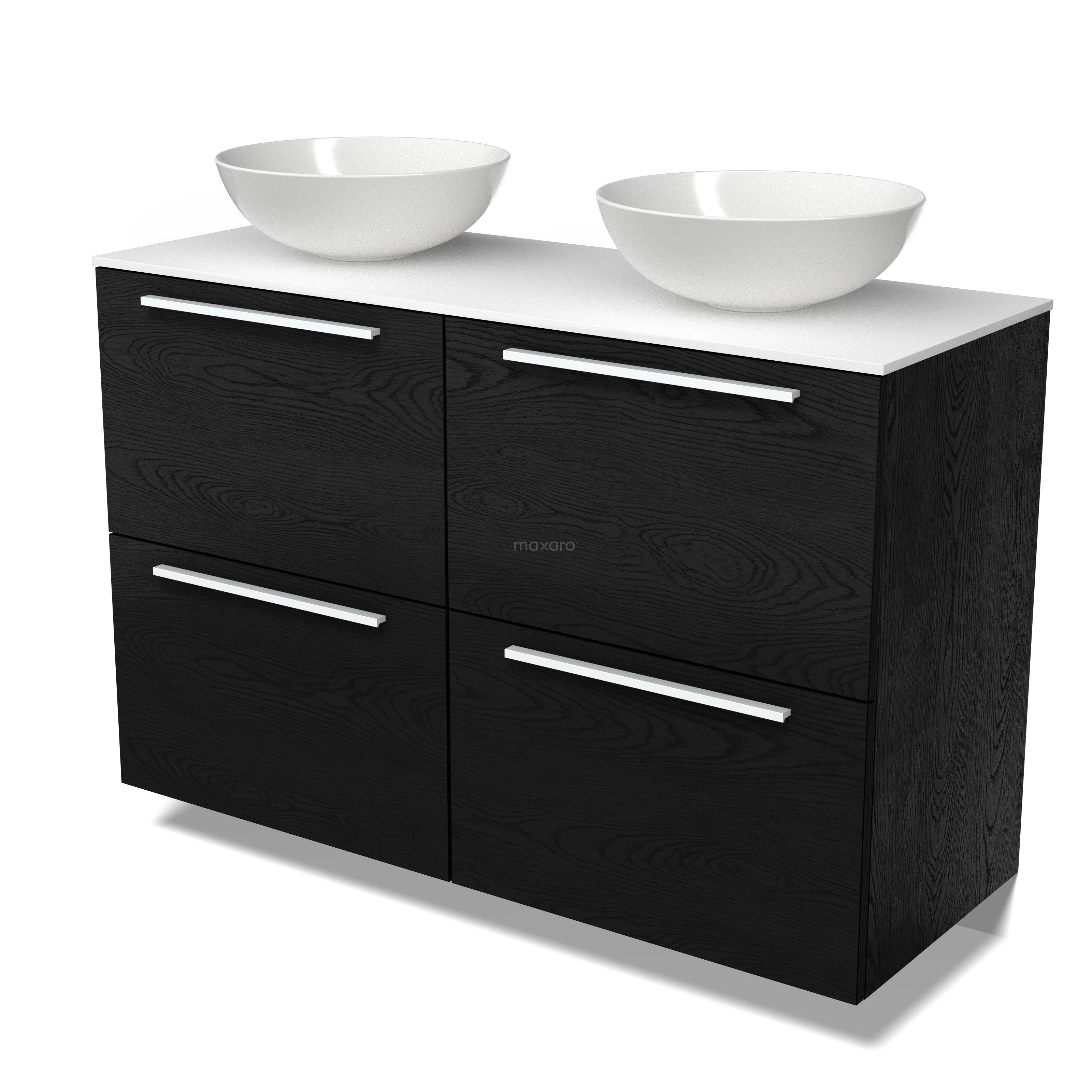 Modulo Plato Vanity units for countertop basin | 120 cm Black oak Flat front Solid surface worktop 4 high drawers