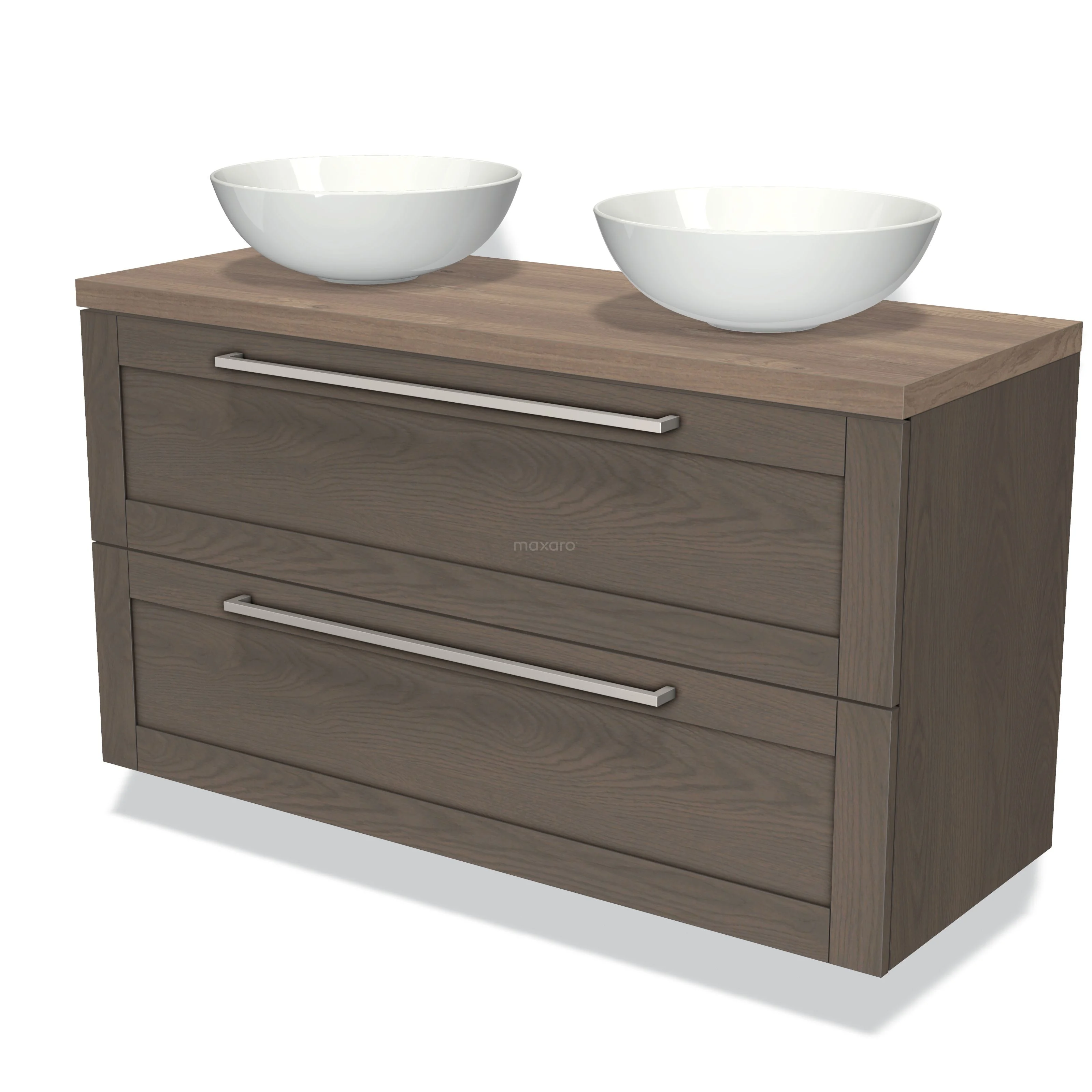 Modulo Plato Vanity units for countertop basin | 120 cm Dark brown oak Bordered front Mid brown oak worktop 2 Stacked drawers