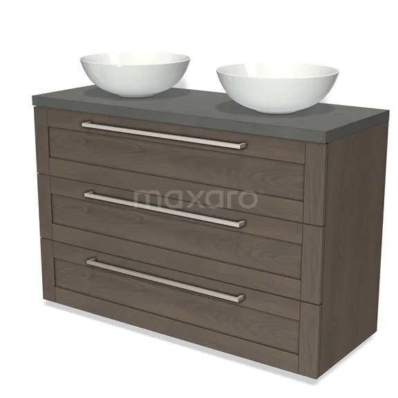 Modulo Plato Vanity units for countertop basin | 120 cm Dark brown oak Frame front Dark grey concrete worktop 3 drawers