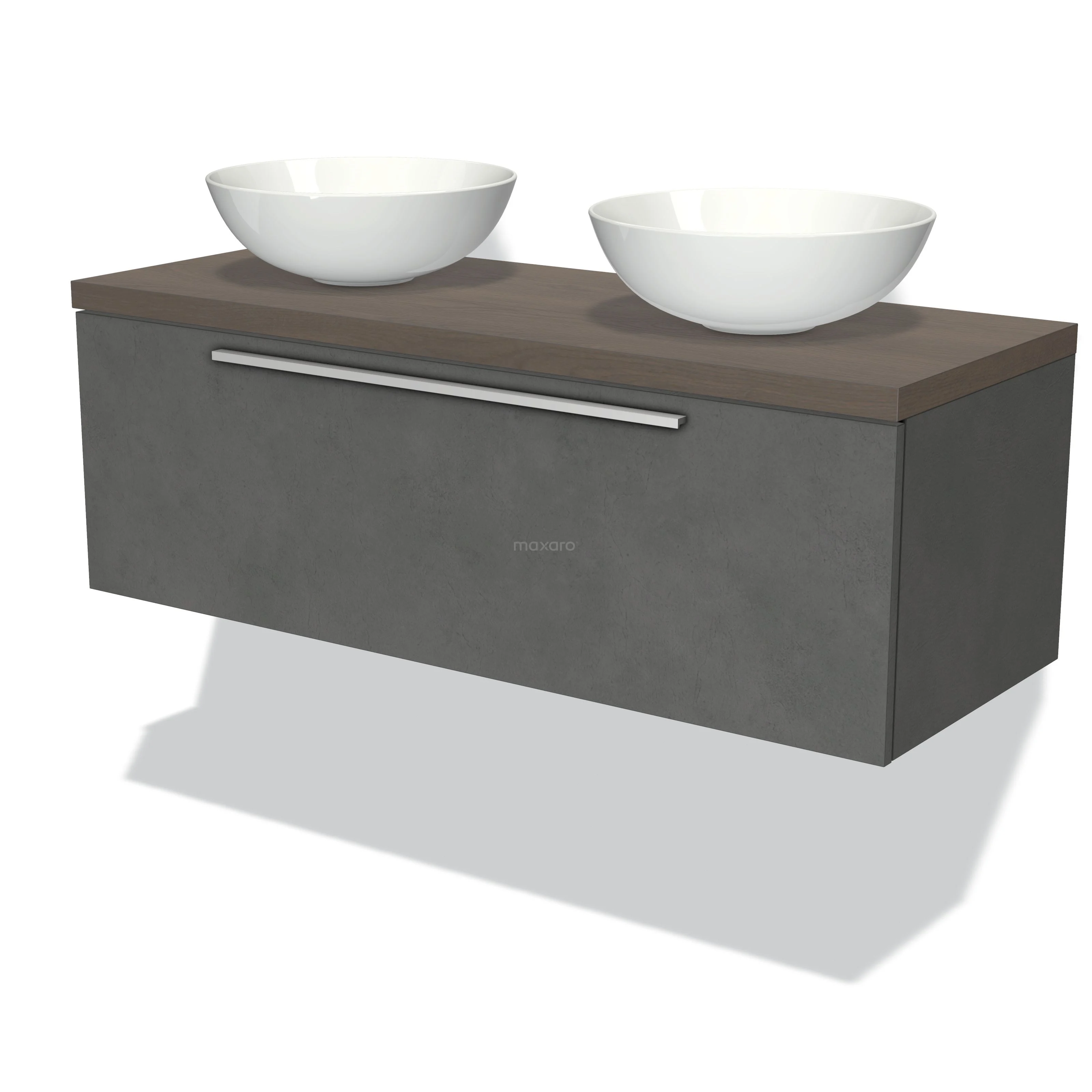 Modulo Plato Vanity units for countertop basin | 120 cm Dark grey concrete Flat front Dark brown oak worktop 1 drawer