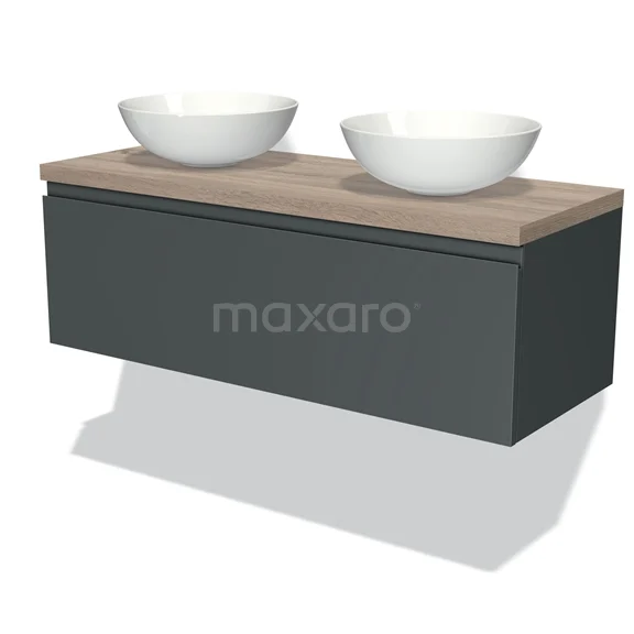 Modulo Plato Vanity units for countertop basin | 120 cm Dark grey Handle-less front Oak worktop 1 drawer